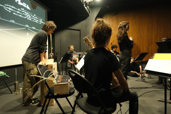 - Semaine 2 : répétitions et concert (tout le monde est sur scène, les étudiants des Beaux-Arts jouant les instruments qu'ils ont créés).