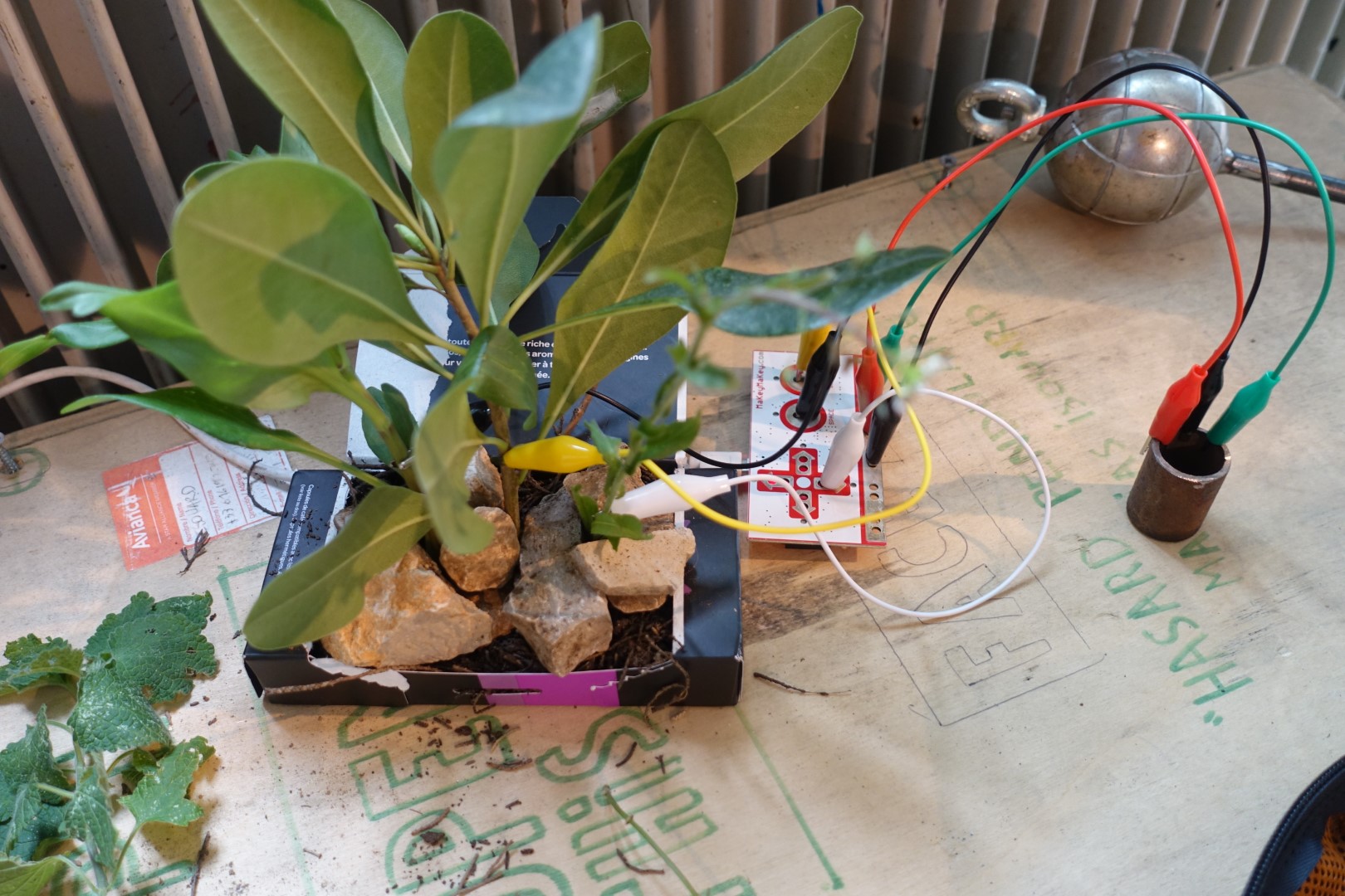 - Son génératif (synthese et sample déclenchés au toucher des plantes et cailloux)