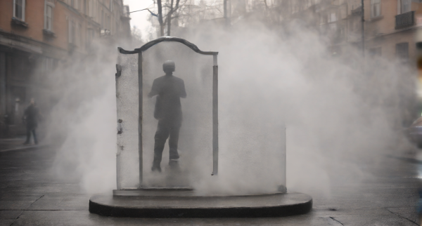 La fumée, produite avec du propylène glycol et de l’huile essentielle de menthe poivrée, évoque une présence à la fois sensuelle et irritante, un parfum de tension sublimé en spectacle.